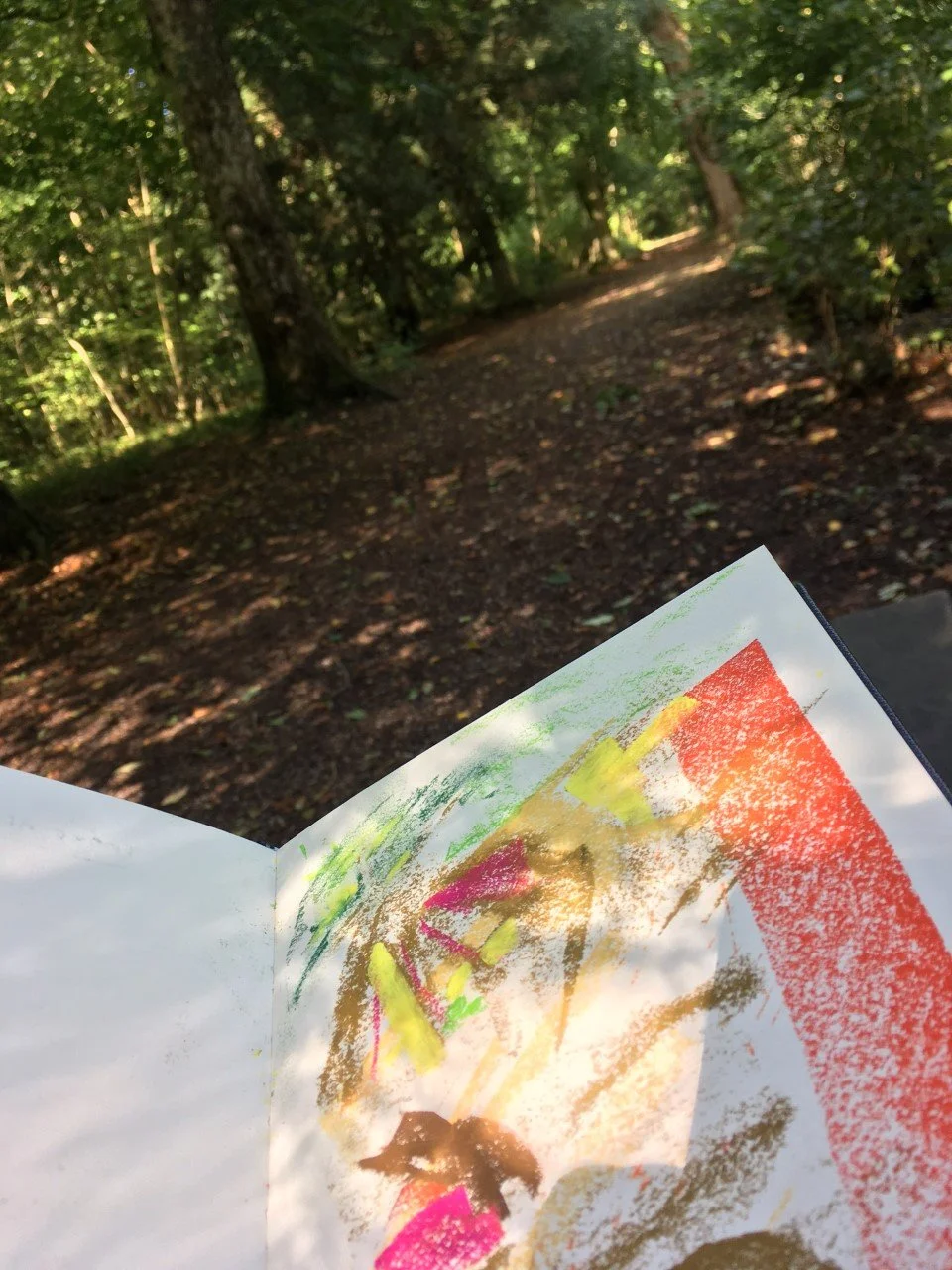 Leigh Woods is an ancient and beautiful woodland on the edge of Bristol, nearly big enough to get lost in. The wood vibrated with life, its wildness was awe-inspiring. The weather changed. Some new people turned up. The great old trees sheltered us in our creative moment of time and place, and everything seemed to slow down. People were excited to share their journals. Repeat visitors found their connection with the place deepening as we focussed on different senses. It was wonderful to see participants finding inspiration and community in the woods, as if a politics of nature was reaching out beyond limited notions of self and human importance. I loved the experience of sharing place, something different to tolerating others in “my” space.